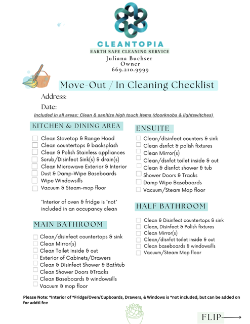 Moving is quite a difficult task in and of itself, so leave the detailed cleaning to us, and get your maximum cleaning deposit return! The Move-Out/In Checklist was specifically designed with the help of local property owners and managers who assisted in creating thiscomprehensive cleaning checklist whether you’re moving out, in, or both!